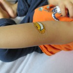 There was no pleading to stop. The nurse tied the tourniquet back on while he lay cooperatively on Alice. The nurse, a true pro, stuck him once and drew blood successfully. In a minute, it was all over. The nurses were amazed by how still Jeremy was, saying to one another, “He’s so good!” Praise God that it was a quick and easy draw. Because his platelets are low, the tourniquet ended up giving Jeremy little spots (petechiae) all over his arm.